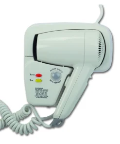 Il manico pieghevole rende questo articolo unico nel suo genere e riduce al minimo l’ingombro in larghezza, consentendo un’installazione facile in qualsiasi spazio, anche quelli più stretti. Questi asciugacapelli dedicati alle camere d’albergo offrono prestazioni di alta qualità, con 3 impostazioni per la velocità e la temperatura dell’aria, e un consumo massimo di 1650W.