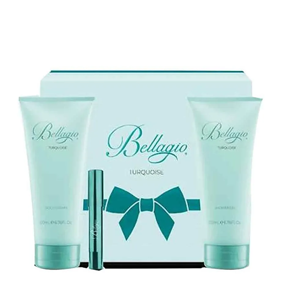 - Confezione regalo Bellagio Turquoise bagnoschiuma 200 ml + crema corpo 200 ml + edp penna 3.2 ml.