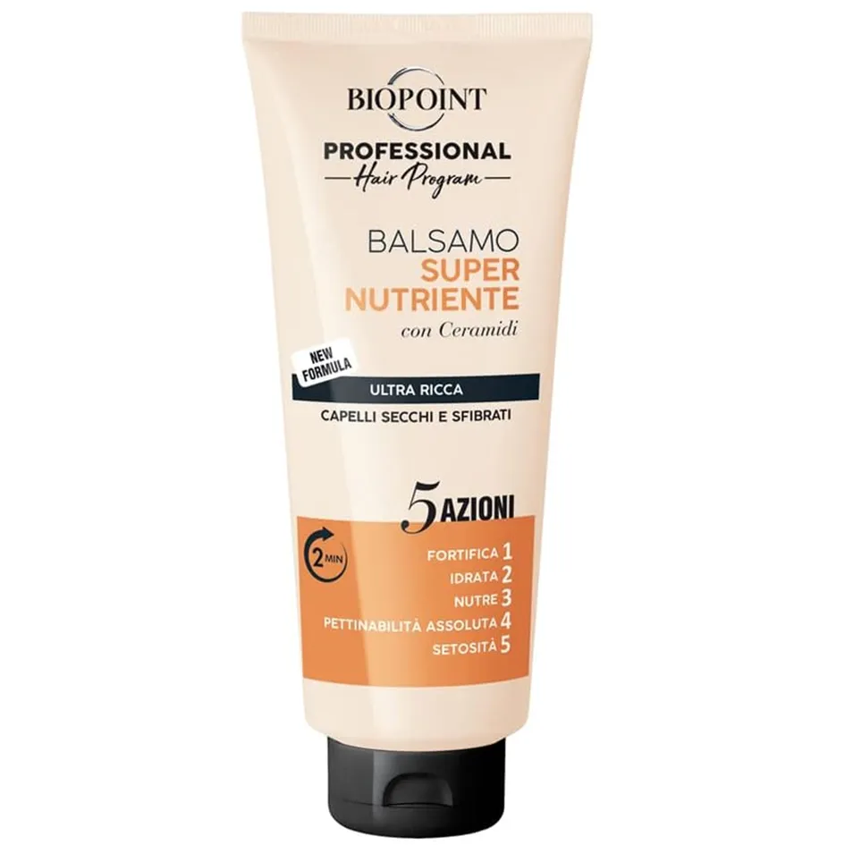 Il Balsamo Super Nutriente con 5 Azioni dona nuova vitalità e benessere ai capelli secchi e sfibrati, per un risultato professionale direttamente a casa tua. La nuova formula si deposita all’istante sulla superficie capillare, creando un film invisibile che sublima e condiziona i capelli in soli 2 minuti di tempo di posa.