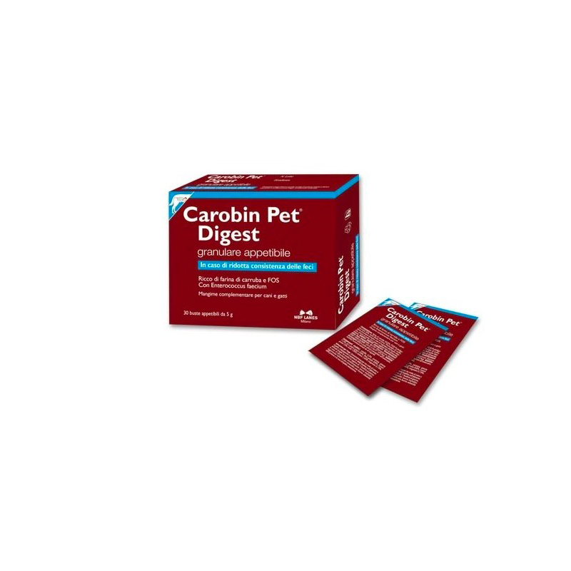 Carobin Pet Digest è disponibile in formato da 30 bustine. Conservare a temperatura inferiore ai 26°C.