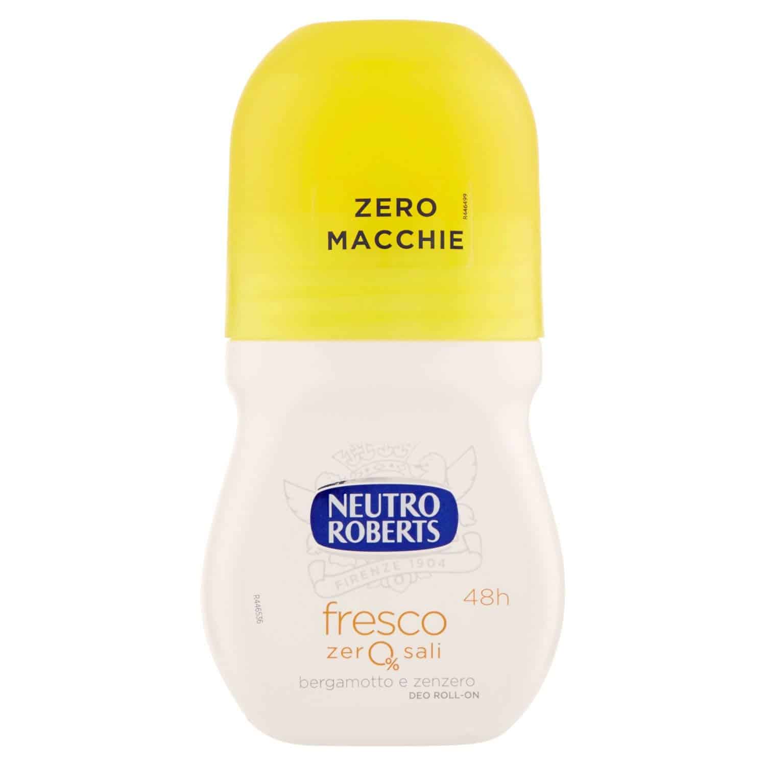 I Deodoranti Neutro Roberts Fresco hanno una formula trasparente, che garantisce l’assenza di residui visibili e permanenti sugli abiti, e sono senza sali di alluminio.